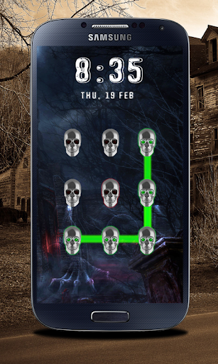 提高您的手機安全通過把安全鎖。骷髏頭圖案鎖主題是最好的屏幕鎖來保護您的手機從東西的人。