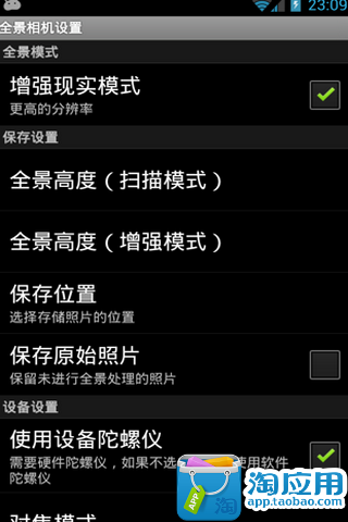 HD Panorama+(高清全景相机+)是Android平台上最快的全景相机!HD Panorama+的快不仅仅体现在拍摄的速度上,照片处理的速度上也是一流的,而且拍摄出来的全景照片也非常清晰,照片分辨率也很高,所以绝对值得一用!主要功能:- 拍摄高清(高分辨率)的全景照片- 快速且平滑的全景照片拼接技术- 最大可拍摄360全角度的全景照片- 将地理位置标记添加到照片- 可保留未进行全景处理的照片- 支持自定义照片的存储位置- 使用陀螺仪的增强现实全景模式友情提示:本作品为汉化版,安装时请先卸载原版再安装此汉化版。