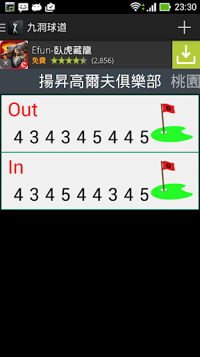 高爾夫記分免費版, 除了沒有下載台灣球場資料功能, 其他與付費版相同, 並加入橫幅廣告.
