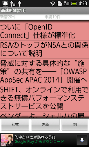 既読未読の状態を保持するので、未読記事のチェックが可能です。