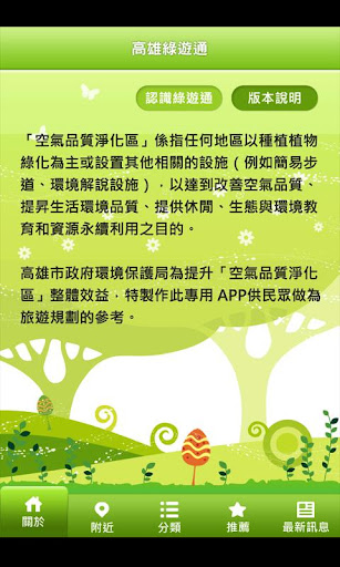 「高雄綠遊通」是高雄市政府環保局為提升「空氣品質淨化區」的整體效益,為民眾提供旅遊規劃參考的特別企劃。
