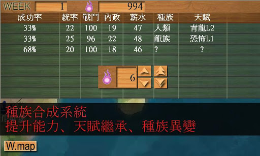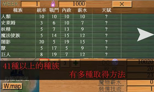 目前,共有41種族可使用,像是精靈、龍、巨人,有些需透過DNA的合成才能合出來,有些可透過生產系統產出,有些可透過召募系統。