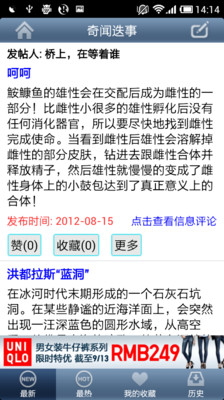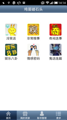 鸡蛋碰石头,天天有看头!这是一款基于移动终端的在线垂直微信息传播与分享平台。这里都有什么?给你带来新鲜的冷笑话和糗事,让你每天笑不停;每日搜寻全球各个角落的奇闻、趣事,多一点惊喜与感动;提供每日最新娱乐资讯、明星八卦;情感密码,关于你和TA;鬼话连篇,收集全球各地的经典鬼故事。。灵异事件。。够胆儿,就关注吧~~;这些信息还可以分享到SNS平台(腾讯微博、新浪微博、人人网),或者以短信方式发送给好友。鸡蛋碰石头,好戏在后头!