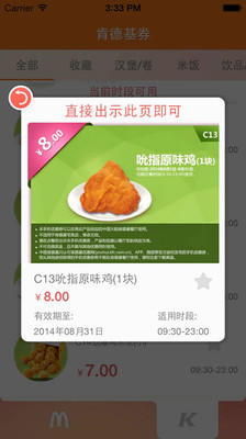 ·麦当劳、肯德基电子优惠券,出示手机即享优惠