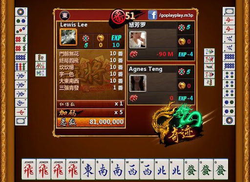4。麻將3P玩家可以贏超過10番,番數越大贏得的籌碼將會加倍
