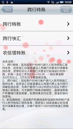 4、账户转账:包括本人账户互转、行内转账、手机号转账、跨行转账、收款人信息维护、转账信息查询;