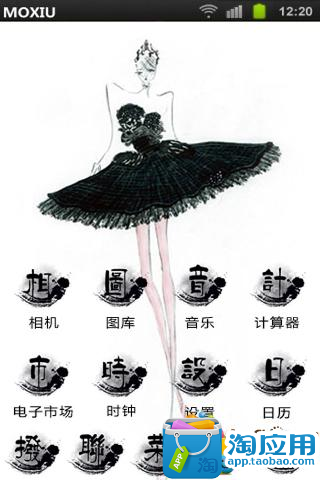 运行“魔秀主题”,在桌面首页(或点击MENU键)点击“主题管家”—>进入主题“管理”界面—>选择相应主题完成应用。