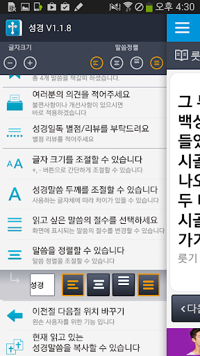 7. 성경 말씀 두께 기능이 있어 눈이 편안 하게 말씀을 읽을 수 있습니다.
