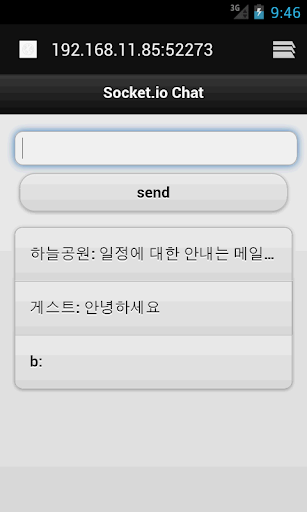 상담용채팅을 위한 간단한 프로그램. 앱을 실행하면 서버에 접속 후 닉네임을 입력할 수 있는 화면이 보여진다. 닉네임을 입력하면 메세지 입력창이 오픈하고 메세지 입력창에 글을 적은 후 send 버튼을 누르면 상대방에게 메세지가 전달. 주고받은 메세지는 시간순서대로 화면아래에 디스플레이된다