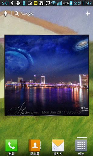 3. 위젯 항목중 포토 프레임 위젯을 선택하여 홈스크린의 빈 공간에 액자 위젯을 끼워 넣습니다.