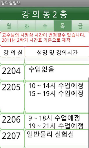 강릉원주대학교 원주캠퍼스 강의실 정보 어플리케이션입니다.