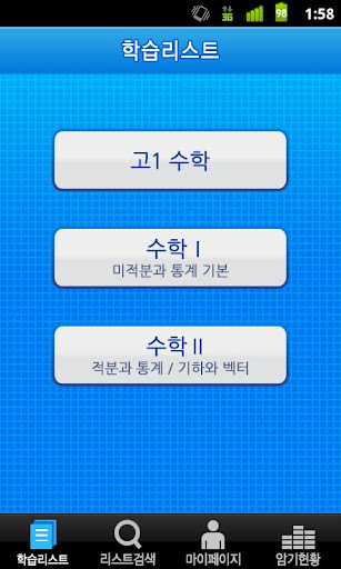 - 7차 개정교육과정의 내용에 따른 고1, 고2 인문계, 자연계별 내용 구성으로 본인에게 필요 한 내용을 선택적으로 확인할 수 있습니다.