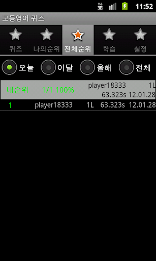 - 퀴즈왕 순위(오늘,이달,올해,전체)를 제공합니다.