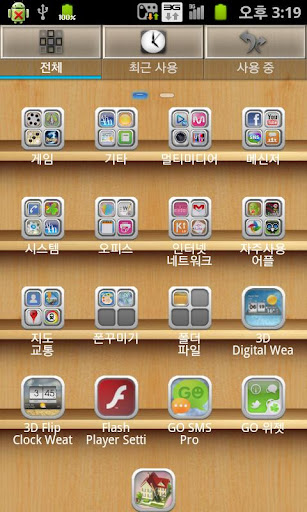 5) 어플서랍 배경 변경 : 고런처 홈화면에서 메뉴/설정/개성화설정/배경/어플 서랍 배경/GO테마 배경화면으로 들어가서 사용하고자 하는 어플서랍 배경을 선택 해 주면됩니다.