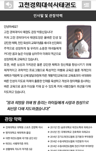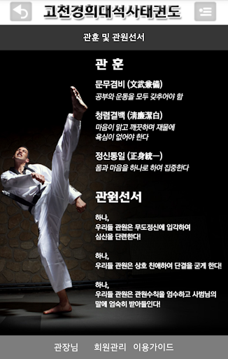 저희 고천 경희대석사 태권도장은 올바른 인성 및 강인한 체력, 전인 육성의 교육이념을 새시대 선진화의 주역으로 성장하게 될