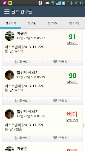 친구등록을 통해 친구의 라운드 기록을 실시간으로 보고 대화할 수 있습니다.
