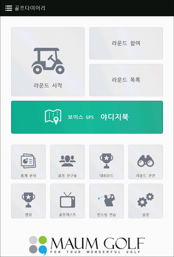골프다이어리는 GPS, 보이스 캐디, 야디지북, 스코어카드, 통계분석 등
