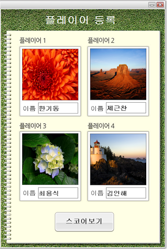 스크린골프를 즐길때 골프장명 팀명을 기록관리하며 순위를 볼수있게 해줍니다.