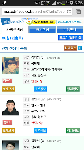 - 과외학생으로 등록하시면 선생님들의 정보를 보실 수 있습니다.