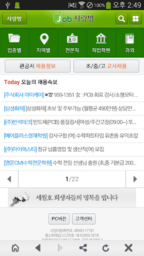 2.취업 : 채용, 아르바이트, 과외, 학원, 강사, 창업, 취업뉴스 등 일자리 및 알바 정보 제공