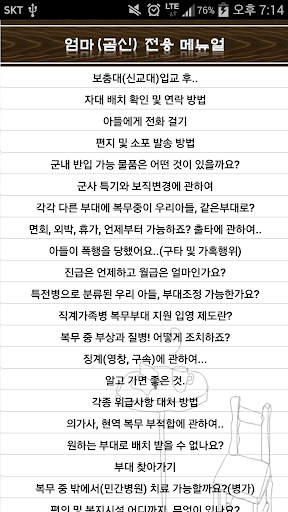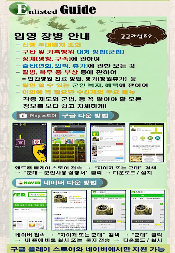 군입대 전, 입대 장병들 및 부모님(곰신)이 사용할 수 있는 꼭 필요한 메뉴들을 편리하게 구성하였습니다.
