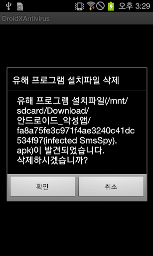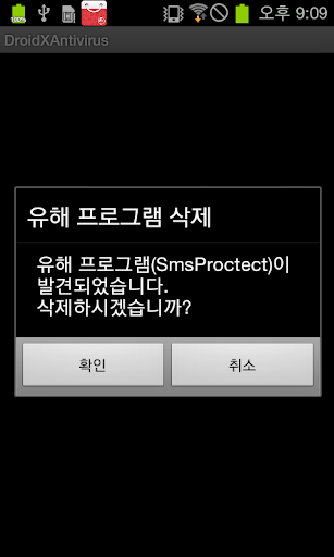 Droid-X는 기업전용(B2B) 백신 앱으로 개인(단독)사용시 정상적으로 동작 하지 않습니다.