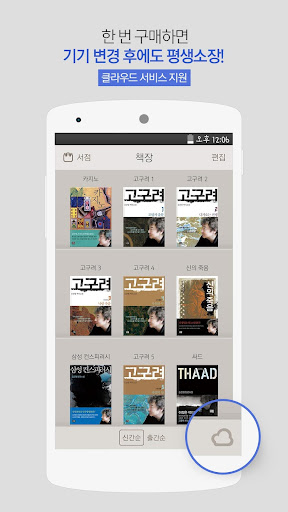 A. '구매도서' 화면에서 구매복원해 주세요. 구매하셨던 구글 계정으로 진행하셔야 정상적인 구매복원이 됩니다. 북잼 클라우드 로그인을 이용하시면 다른 디바이스에서도 구매하신 책을 동시에 보실 수 있습니다.