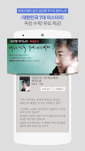 어디에서도 볼 수 없는 작가의 취재과정이 담긴 《대한민국 7대 미스터리-김진명 작가노트》가 독점 수록된 데다가 스토어에서 책을 구매해 ‘내 서재’에 담을 수 있어 소장하고 싶은 앱으로 탄생했다.