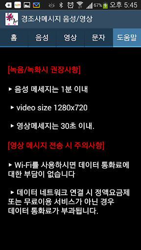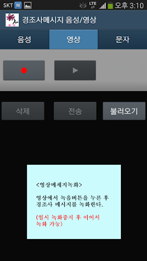 ▶ 영상 메세지 사이즈는 320x240으로 하시고 30초 이내 녹화를 권장합니다.