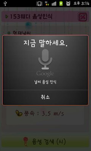 음성검색으로 전국 주요시의 현재 날씨를 검색