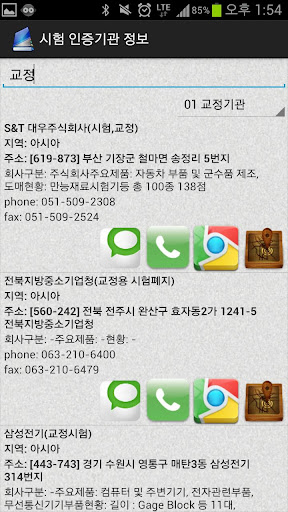 기술규제제도 내 시험 및 인증기관을 정보 조회 및 바로 전화걸기 기능, 홈페이지 바로가기 기능, 위치정보 보기 기능, 정보 공유기능