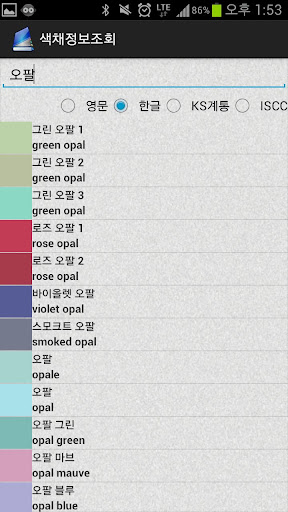 기술표준원에서 발간한 '공공디자인 색채표준가이드'에 따른 표준색을 검색