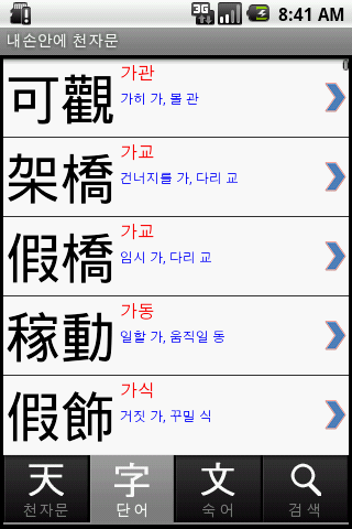 ★단어에서는 실생활에 많이 사용되는 한자가 등록되어있습니다
