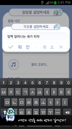 4. 각오보기 기능 : 알람을 맞추는 날 각오를 설정하면, 알람이 울릴 때 '각오'를 확인할 수 있습니다. 의지를 불태우세요!