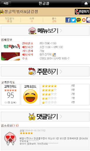 현재위치에서 가장 가까운 배달음식점 메뉴와 리뷰 및 갤러리를 확인하고