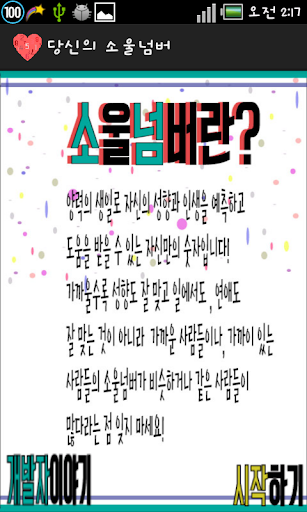 내 자신의 성격에 대해 궁금증이 생기기 시작할 쯤 양력의 생일로 자신의 소울넘버와 소울넘버에 따라 다른 성격을 알 수 있는 소울넘버에 대해 알게 되었다. 친구들과 맞춰본 결과 맞는 부분이 많아 다른 사람들도 친구들과 하며 자신이 몰랐던 성격도 알 수 있었으면 좋겠다 싶어 앱으로 만들게 되었다.
