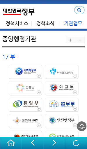 - 48개 중앙행정기관의 기본정보와 기관에서 하고 있는 업무를 한 눈에 찾아 보실 수 있습니다.