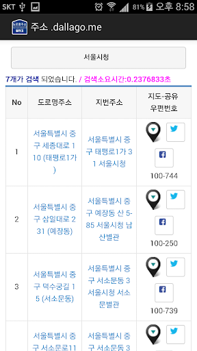 免費玩도로명주소, 지번주소, 건물명 검색, 지도 표시 App