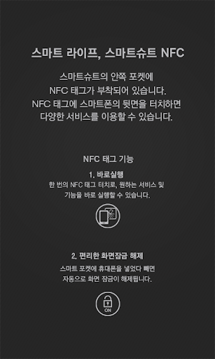 로가디스 SMART SUIT는 NFC 태그가 부착된 슈트로, NFC태그에 스마트폰 뒷면을 터치하면