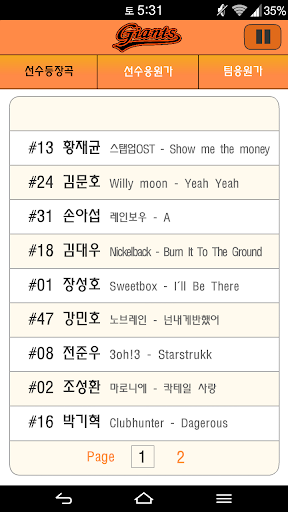 선수이름이나 노래제목을 클릭하면 재생됩니다