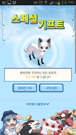 ※풀버전 전환 시 앱 내의 모든 컨텐츠와 "은색 여우" 아이템 쿠폰이 즉시 제공되어, 환불이 불가합니다.