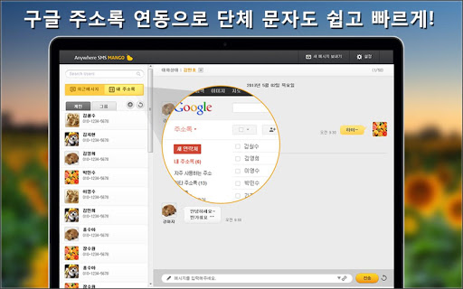 별도 회원가입 없이 구글 계정으로 쉽고 빠르게 PC에서 SMS 수∙발신 & 히스토리 관리!!