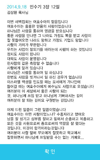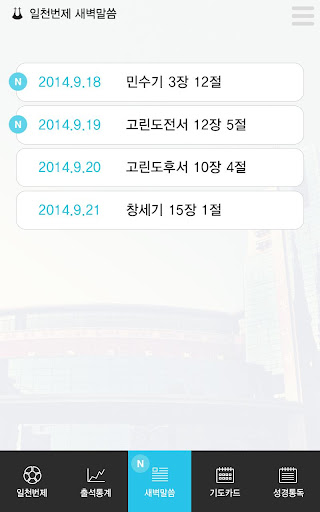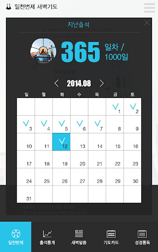 당회장 목사님께서 강조하시는 새벽기도, 성경읽기를 스스로 체크 하실 수 있는 기능을 위주로 담았습니다