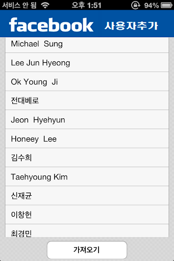운세 메뉴선택> 페이스북 사용자추가> 사용자선택> 운세 결과 (토정비결, 오늘의 운세, 궁합, 사주, 즉석점/주역 등)