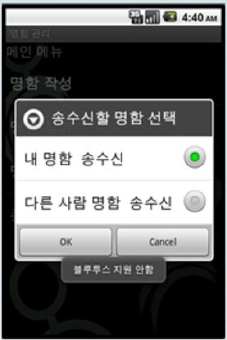 스마트 폰으로 명함을 교환하고 손쉽게 관리할수 있도록 도와주는 앱입니다.