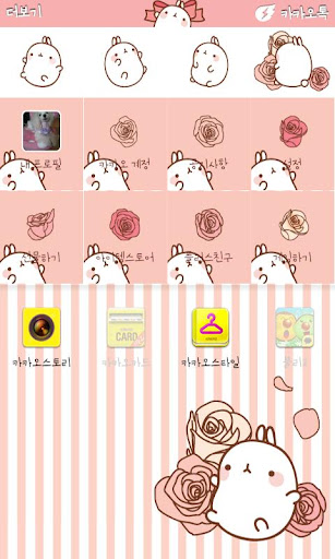 설정안에 메뉴중에 테마 설정을 누르시면 몰랑이 테마가 설치되어 있습니다. 그걸 선택하시면 이쁜 몰랑이 플라워 테마가 짠~~~ 적용완료~