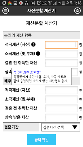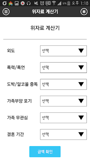 간단한 선택만으로 위자료와 양육비, 그리고 재산분할 금액을 계산할 수 있습니다.