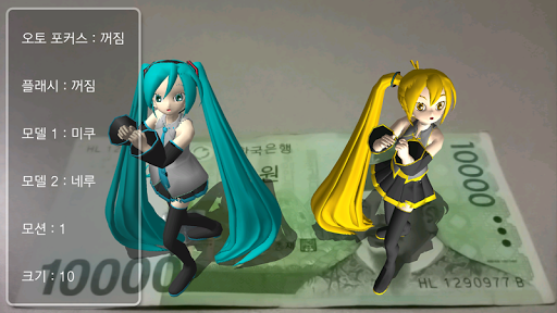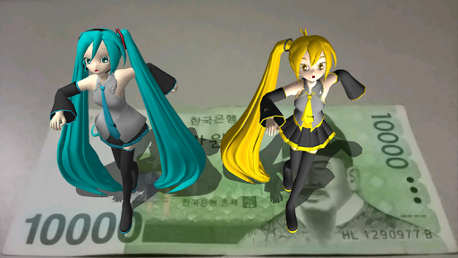 지폐를 비추고 포커스를 맞추시면, 미쿠가 나타납니다.