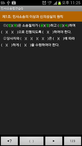 - 조문의 주요 키워드를 순차적으로 ‘숨김/표시’ 하여 암기효과 향상