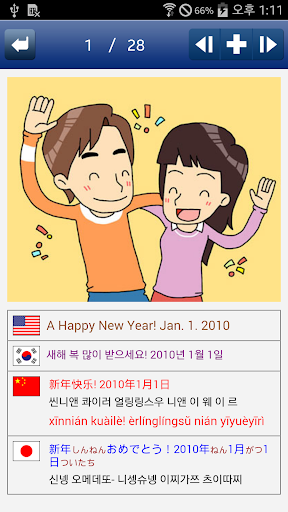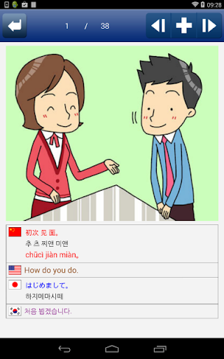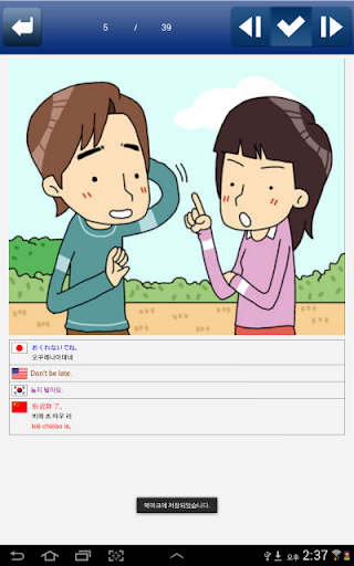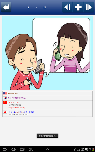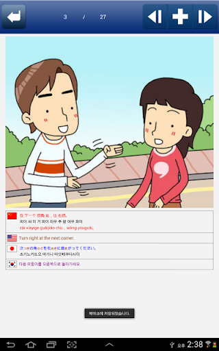 - 일상생활에서 자주 쓰이는 기초 필수 표현을 4개국(영어, 중국어, 일본어, 한국어) 원어민 발음과 함께 학습할 수 있습니다.